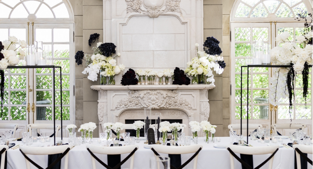 Florals, water fountains, and decor inspired by the French aesthetic. A breathtaking masterpiece adorned with orchids in cascading splendor, a monochromatic palette highlighted by touches of gold, and sophisticated candlelight that made the room come alive as the sun dipped below the horizon.