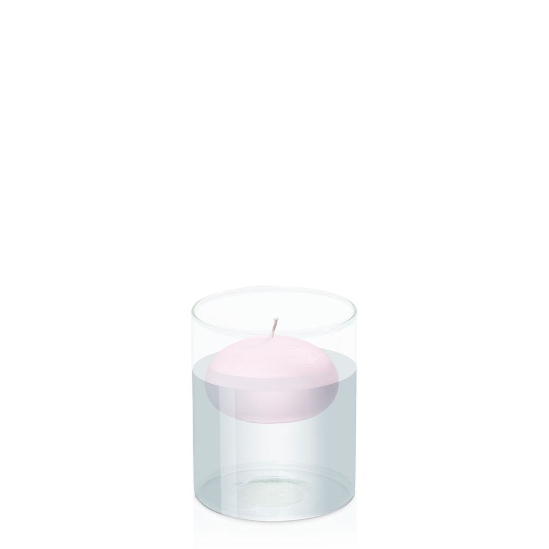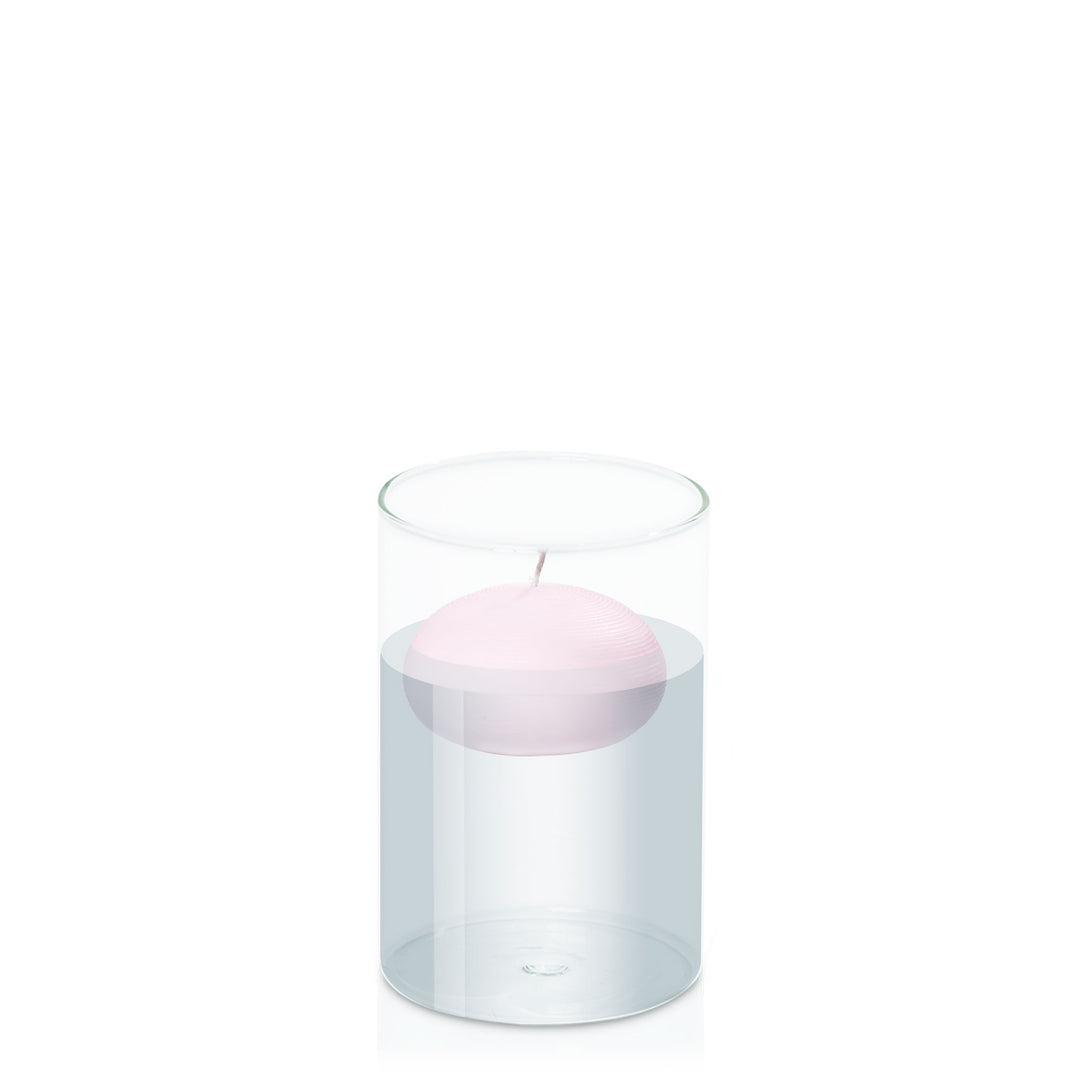 Pastel Pink 7cm x 10cm Pillar in 8cm x 15cm Glass