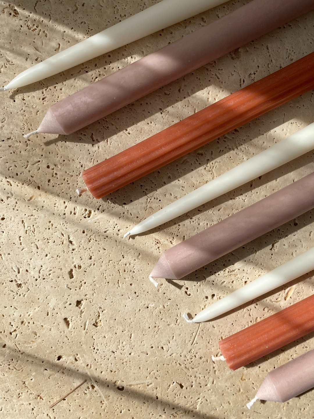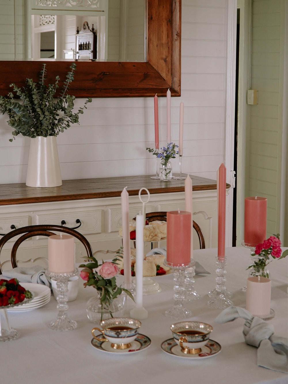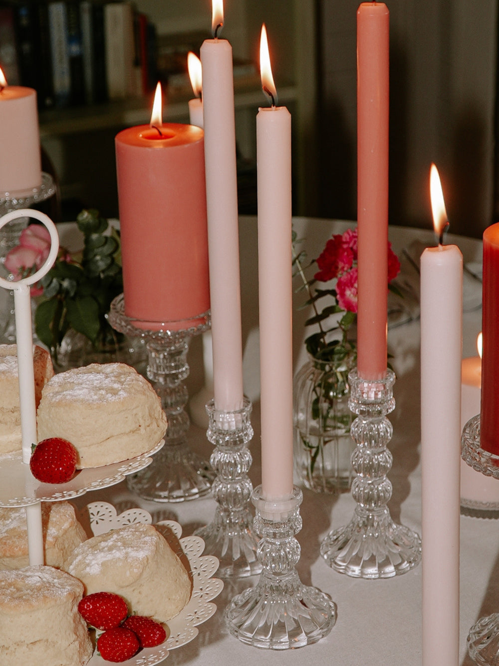 Our collection features glass holders for clean, minimalist elegance, wooden holders for rustic, bohemian charm, marble or ceramic for rich texture and timeless beauty, and metal holders for sleek, modern lines. Pair them with over 50 candle colours to create contrast, harmony, or a signature look. Metallic gold and silver holders elevate any table with a reflective, luxurious glow, while adding glass sleeves creates an extra layer of ambience. Versatile and stylish, these candle holders transform everyday moments and special occasions alike into memorable, beautifully styled experiences.