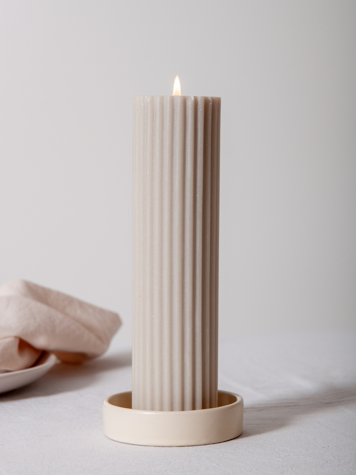 Alabaster Zara Ceramic Pillar Candle Holder - Small