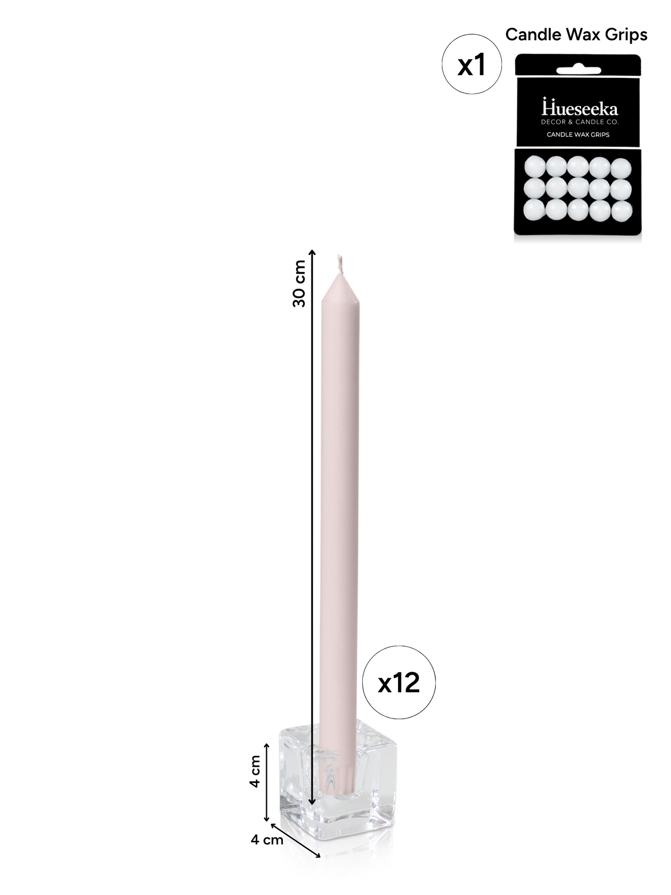Bring effortless elegance to your wedding or event with this set of 12 dinner candles paired with classic glass holders. Perfect for creating height and ambience, this versatile set works beautifully styled down long tables, grouped into centrepieces, or placed throughout your space for a soft, romantic glow. A timeless choice for any setting.
