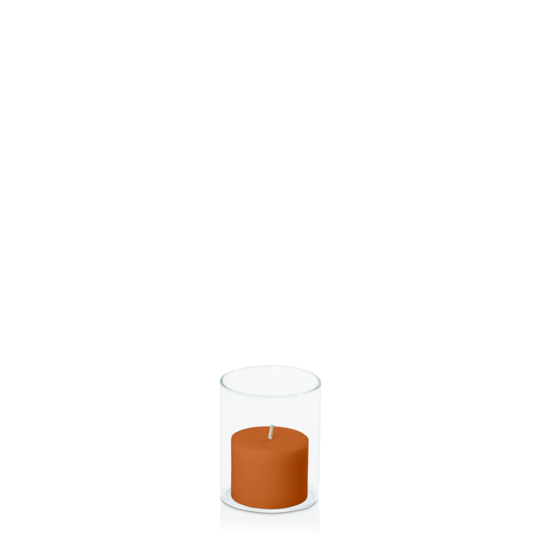 Baked Clay 5cm x 4cm Pillar in 5.8cm x 7cm Glass