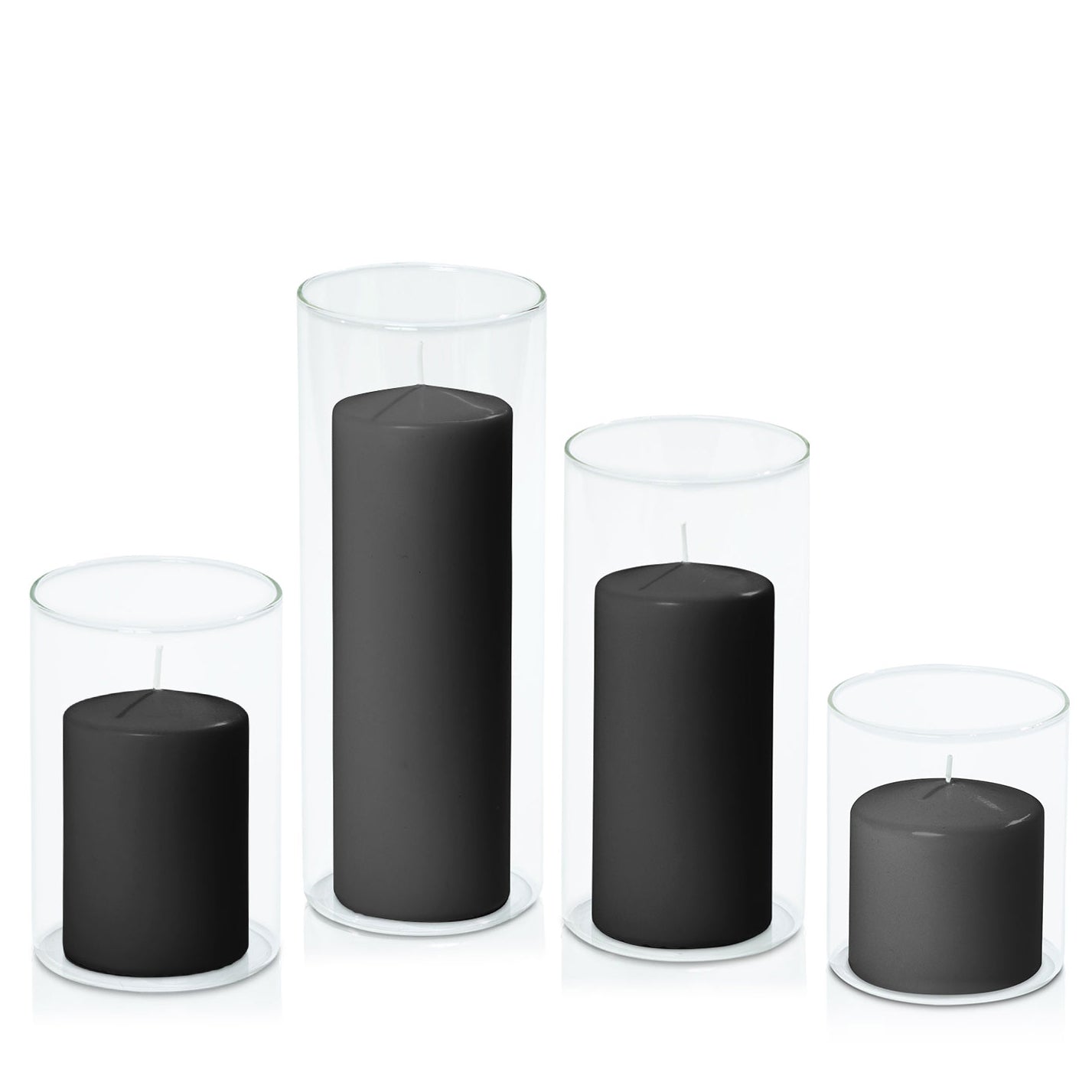 Black 7cm Event Pillar in 10cm Glass Set - Sm