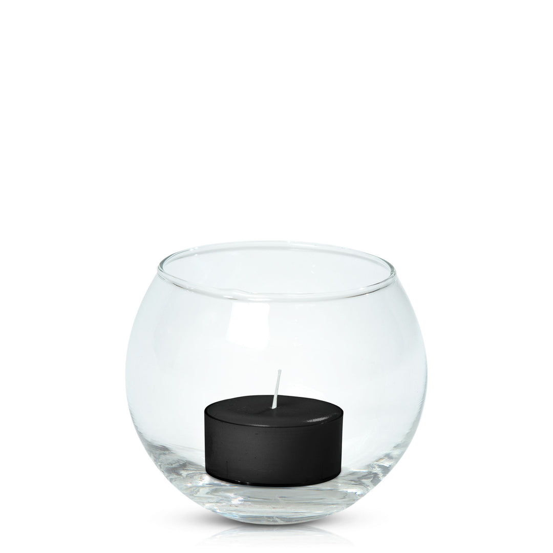 Combining a hand-poured, unscented 4 cm x 2 cm Acrylic Cup Tealight with a sleek 7 cm x 5 cm designer fishbowl glass, this ensemble delivers durability and longevity with a clean, enduring burn. Encased within the glass bowl, the flame will remain safely contained.