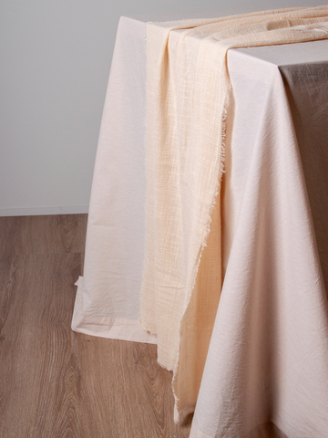 The raw fray edge adds a relaxed, textural element that pairs beautifully with rustic, bohemian, and farmhouse-inspired décor. Its breathable weave and gentle drape create a soft, effortless look, perfect for both everyday entertaining and special events.