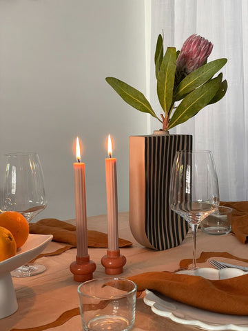 A harmonious fusion of style and functionality, this unique candle design adds a bold pop to your tablescape. Say goodbye to traditional candle holders and welcome the convenience of our in-built base. The Dyad Candle is a seamless and visually stunning piece that captivates guests and hosts alike.