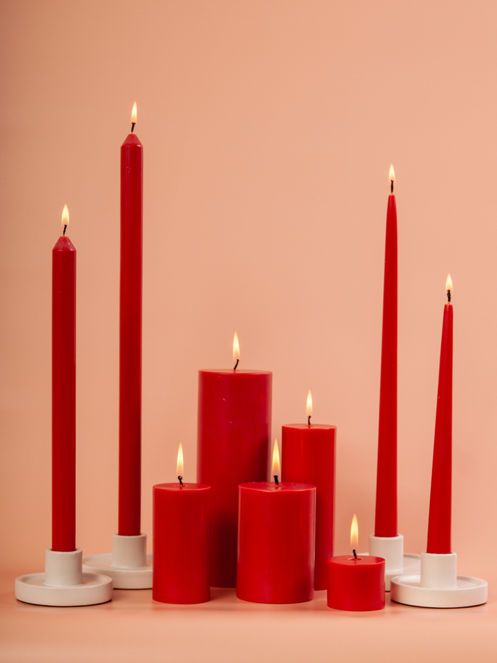 Maximise the aesthetic appeal of our Taper Candles by seamlessly integrating them into your decor. Pair them with one of our sleek candle holders for both a secure base and a touch of sophistication. Experiment with an array of colours, sizes and textures to create a dynamic visual impact, or add an extra layer of refinement by incorporating our glass sleeves.