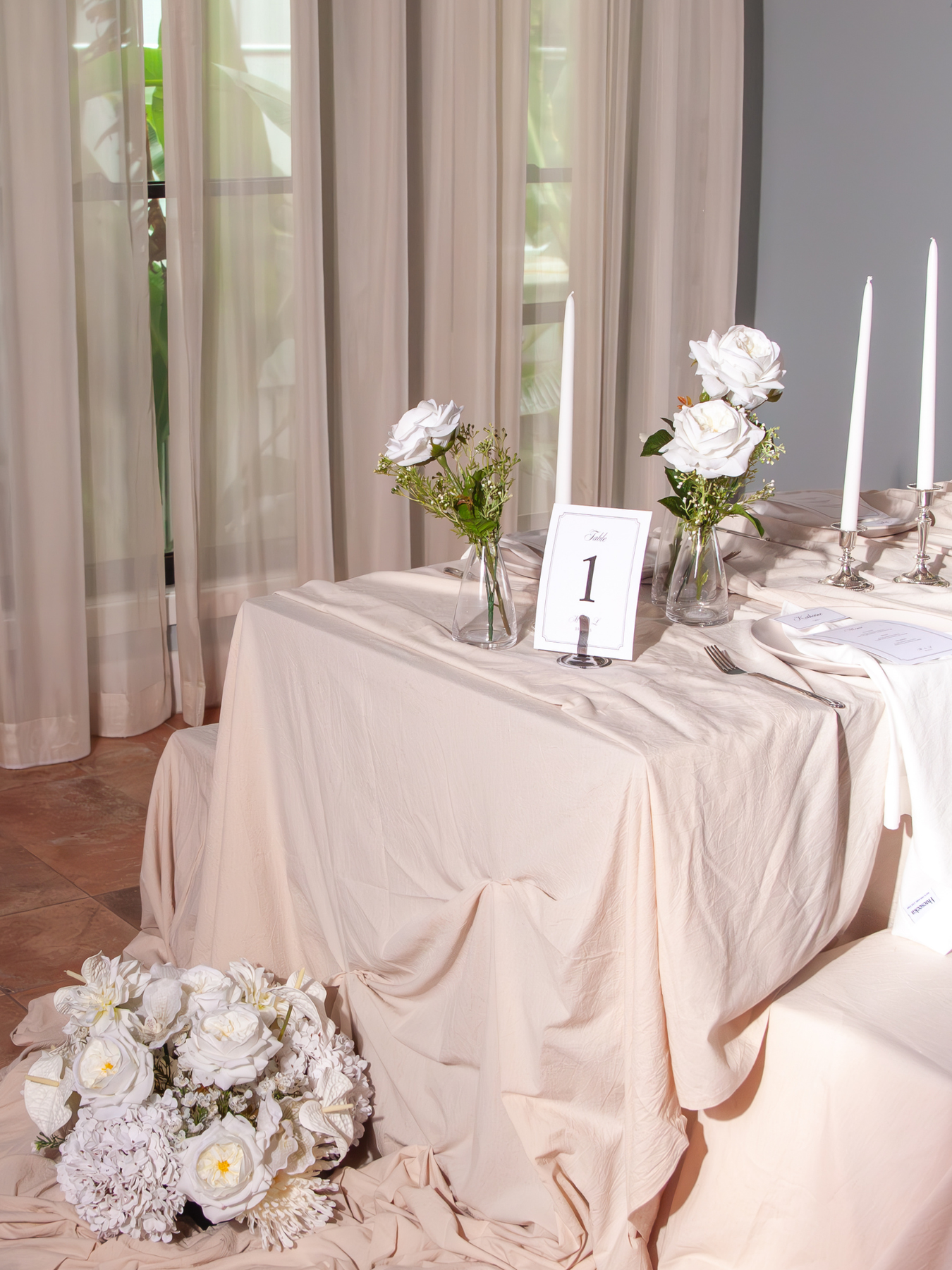 Looking to bring a graceful, elegant touch to your space without the upkeep of fresh flowers? Our large white bud vase arrangement is thoughtfully crafted by our in-house florists, featuring soft white blooms for a beautifully balanced, refined display. Ideal for tabletops, mantelpieces, or as a subtle accent throughout your ceremony or reception, it adds timeless sophistication and effortless charm to your décor.