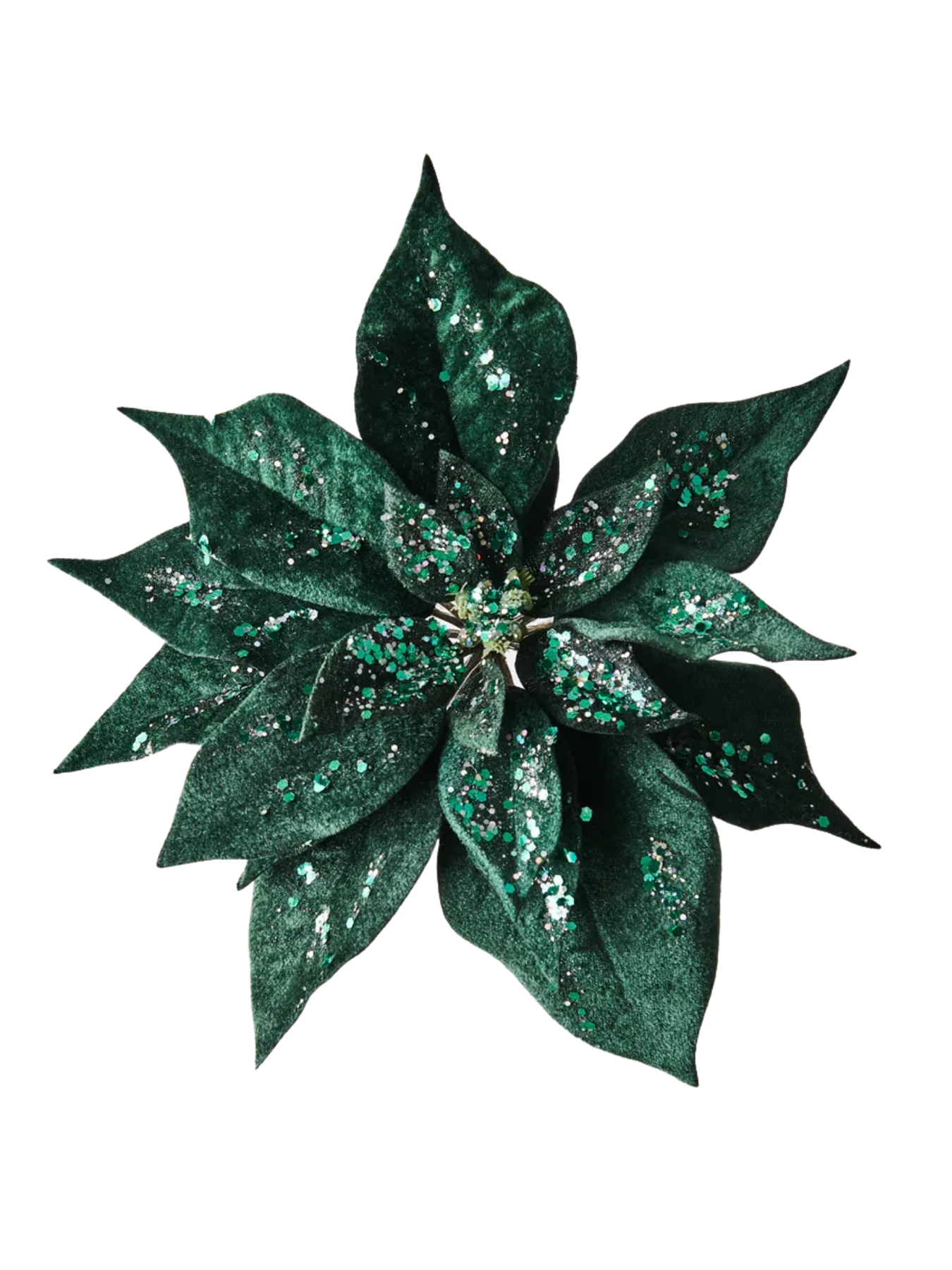 Presenting our Emerald Green Velvet Poinsettia Clip for a truly enchanting Christmas. Crafted with luxurious velvet petals and adorned with glitter finishes, each bloom embodies festive elegance, adding a touch of holiday magic to your decor.