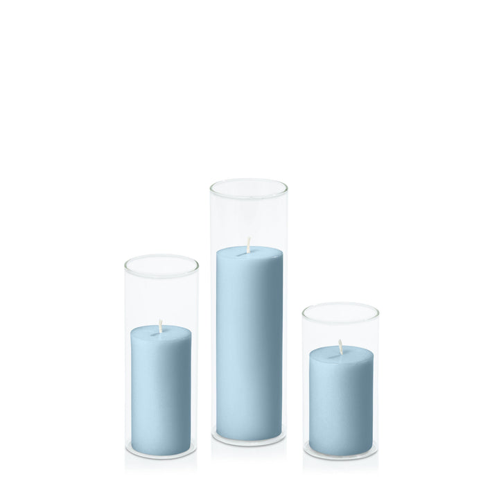 French Blue 5cm Pillar in 5.8cm Glass Set - Med