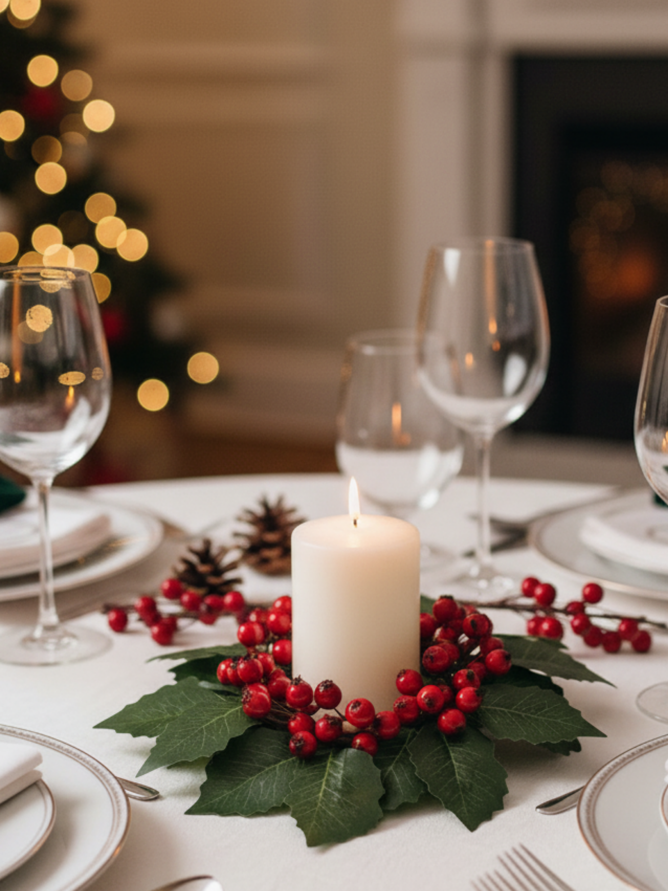 Holly Berry Candle Ring Wreath Red