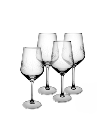 Elegance meets enchantment with our Irwin set of 4 wine glasses. Beautifully engraved starburst details make these stunning glasses shine in any occasion.