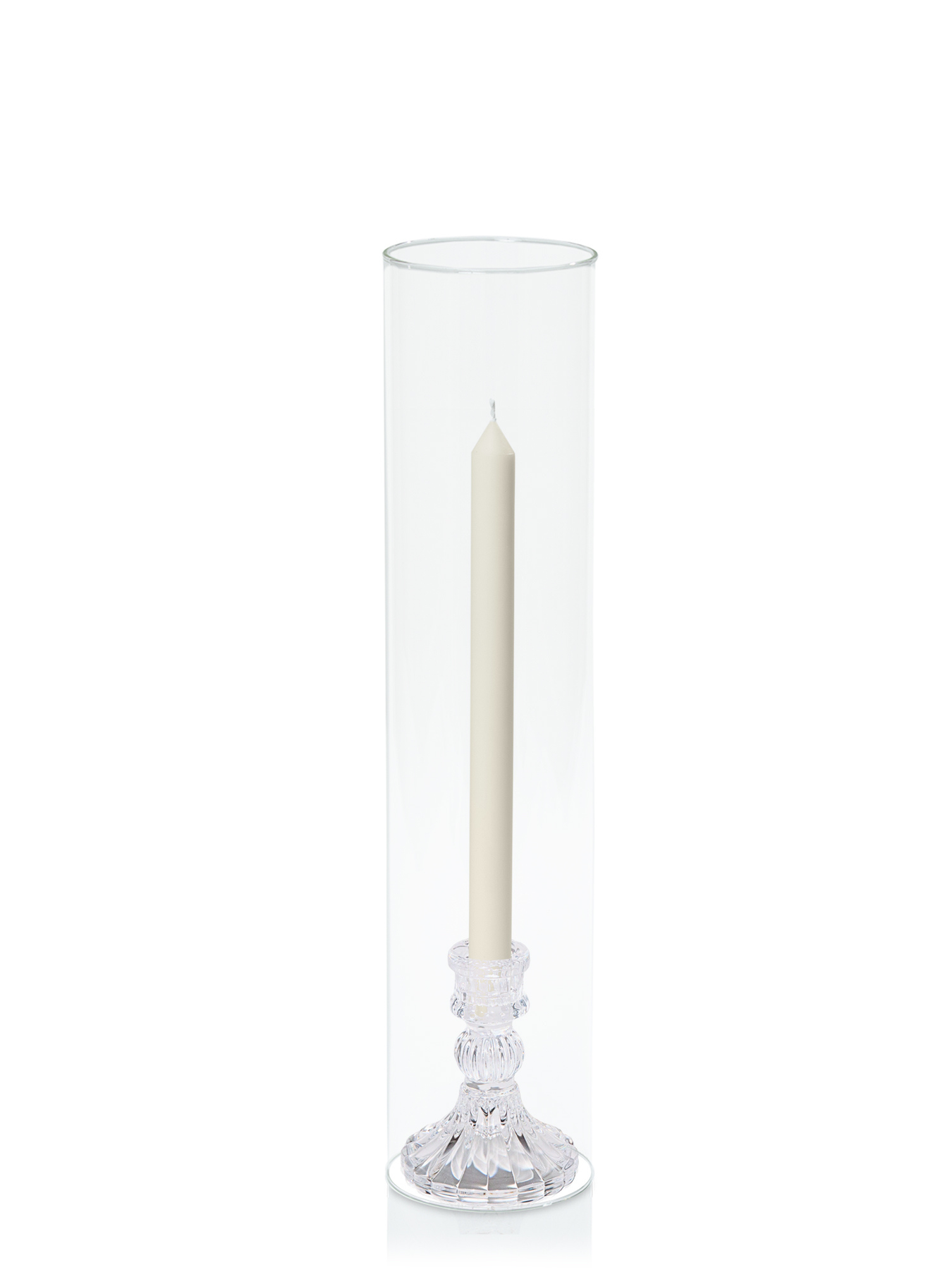 Ivory 30cm Dinner Candles with Estelle Glass Holders and Glass Sleeves - Set of 12