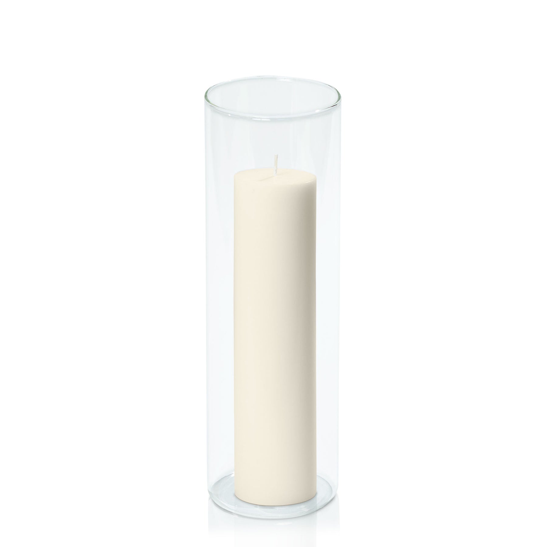 Ivory 5cm x 20cm Pillar in 8cm x 25cm Glass