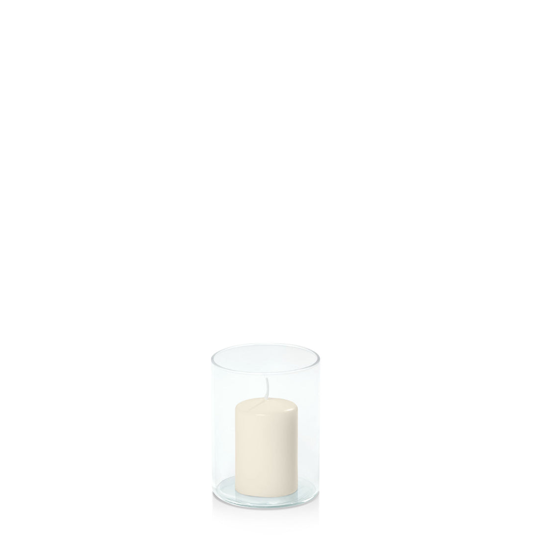 Ivory 5cm x 7.5cm Event Pillar in 8cm x 10cm Glass
