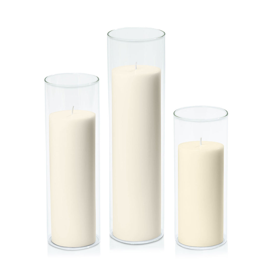 Ivory 7cm Pillar in 8cm Glass Set - Lg