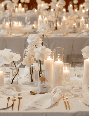 Elevate the ambience of your events with our Event Pillar Candles, meticulously designed to be the perfect companions for memorable occasions. These classic candles radiate sophisticated charm, creating an enchanting atmosphere for weddings and special events. Arrange them on mass to create a stunning focal point, or pair them with different candle and glass combinations to achieve a personalised and captivating aesthetic.