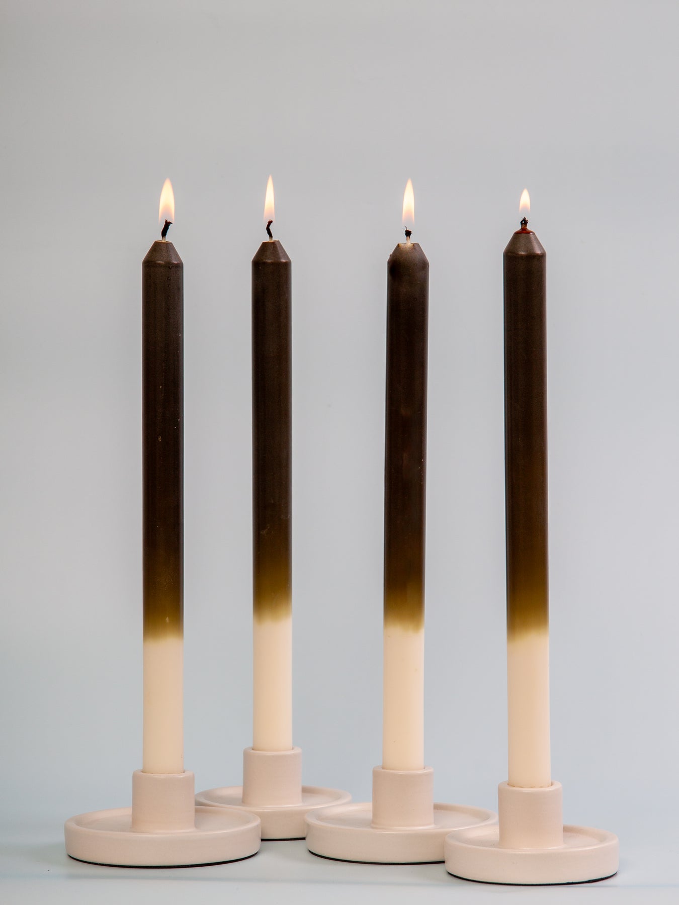 Each Ombre Dinner Candle is hand-poured and carefully over-dipped, allowing the top layer of colour to melt away, unveiling the base colour as it burns. This creates a beautiful, evolving gradient effect.