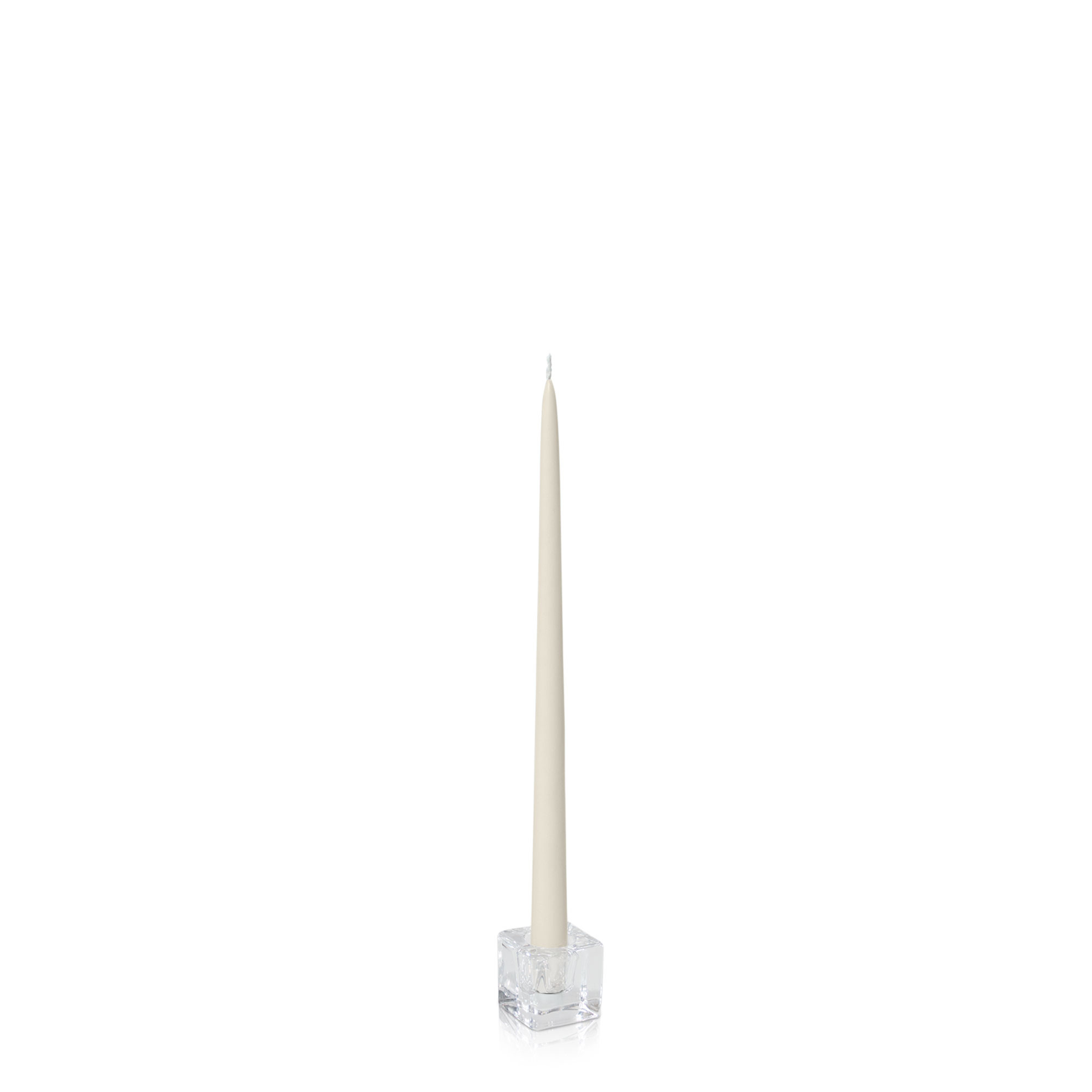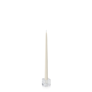 Ivory 35cm Taper Candles with Small Glass Holders - Set of 12
