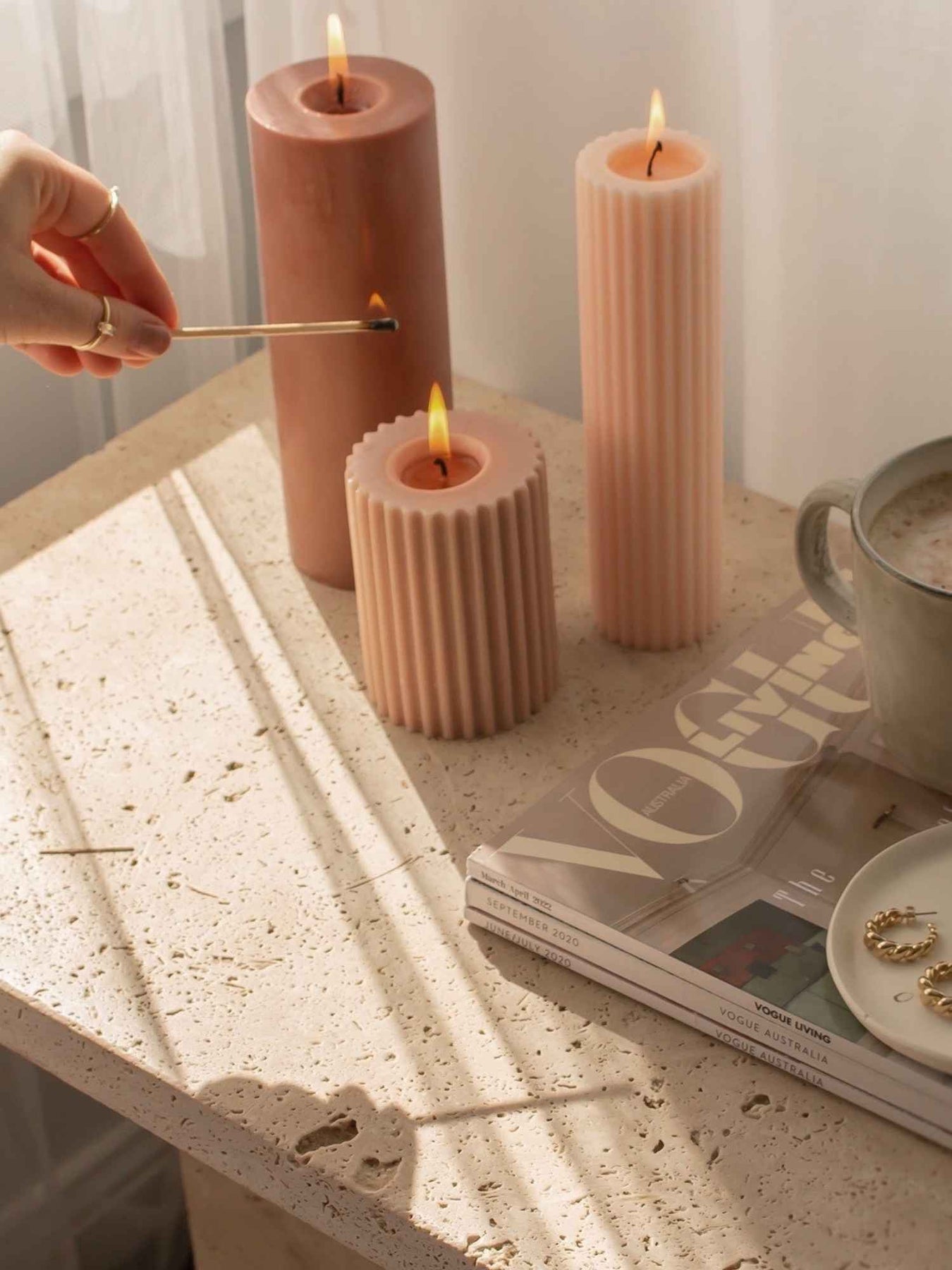 For events, elevate the ambience by clustering various heights of pillar candles in complementary colours on tables or along walkways for a sophisticated touch. At home, create a cosy atmosphere by arranging slim pillar candles in decorative holders on mantels or side tables, infusing your living space with warmth and style.