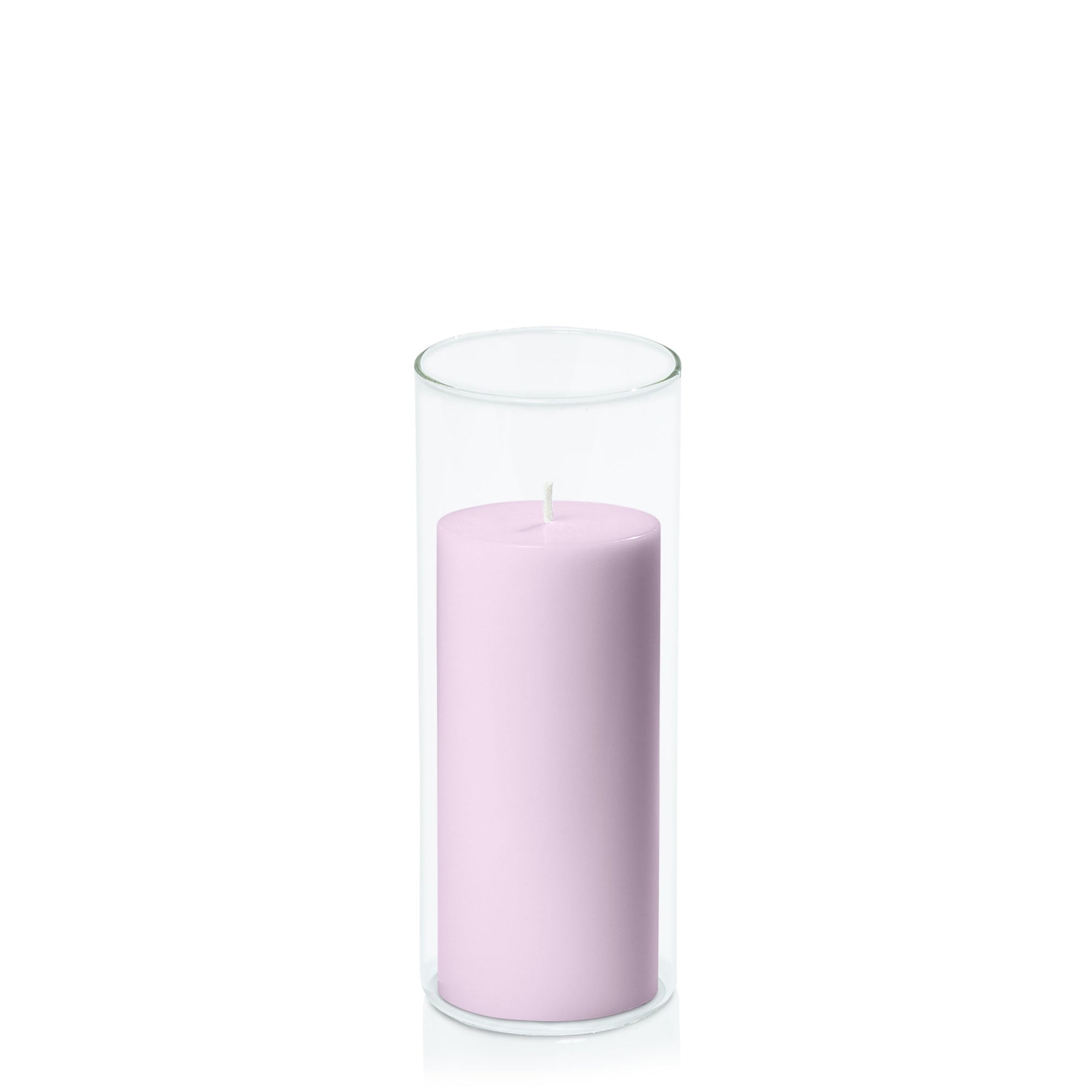 Lilac 7cm x 15cm Pillar in 8cm x 20cm Glass