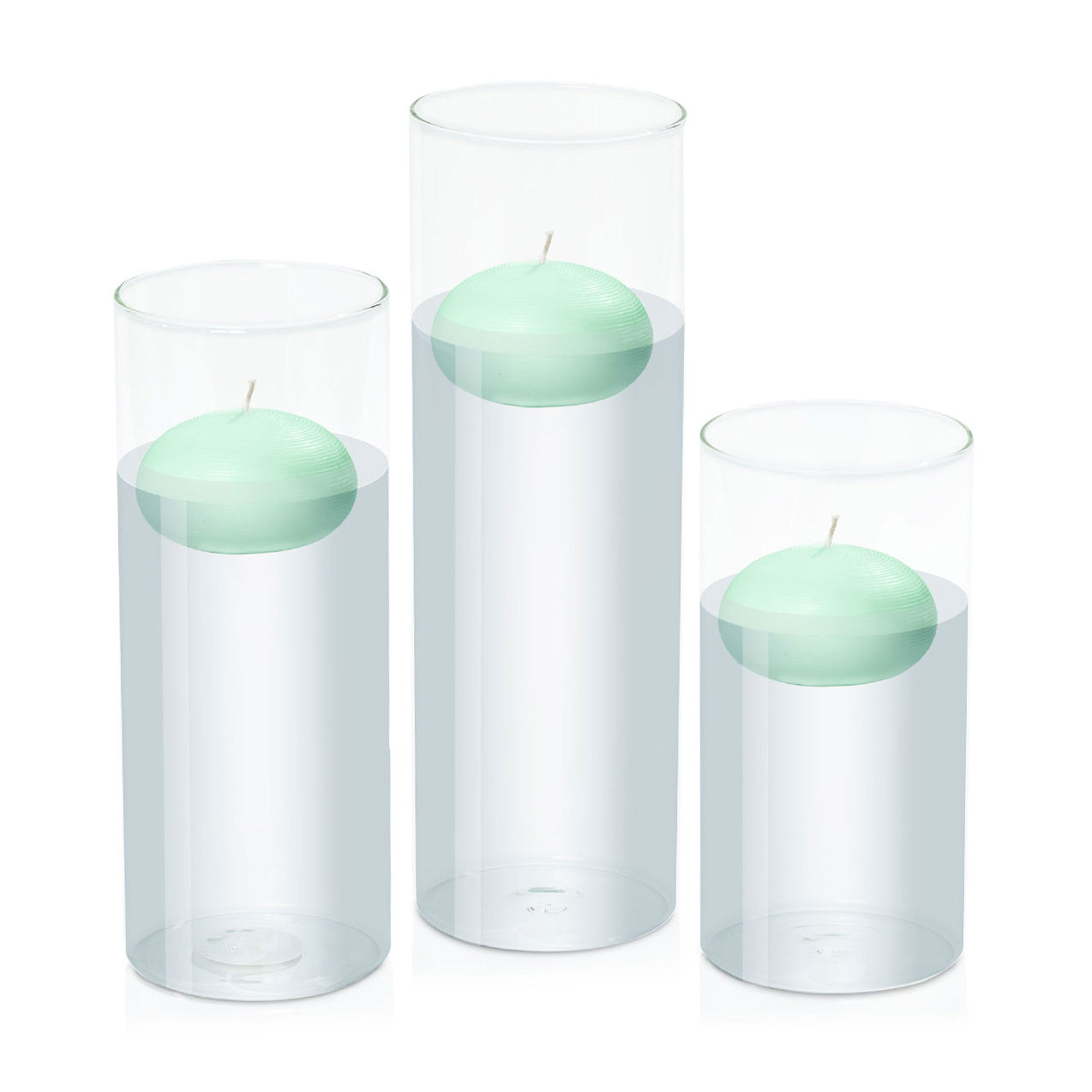 Mint Green 7.5cm Floating Candle in 10cm Glass Set - Lg
