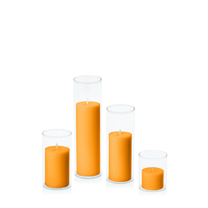 Orange 5cm Pillar in 5.8cm Glass Set - Sm