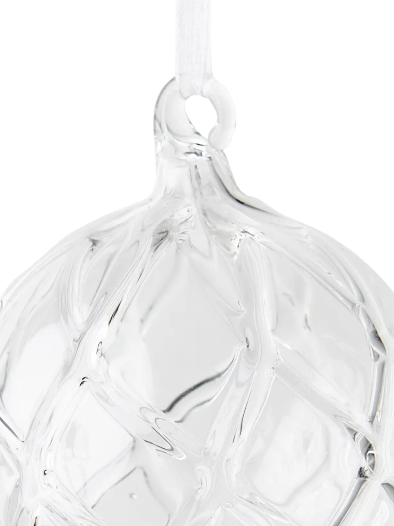 Introducing our Ornament Ball Weave Clear Glass Christmas Ball. Its exquisite craftsmanship and intricate weave pattern create a captivating play of light. Elevate your holiday decor with this finely detailed and timeless ornament.