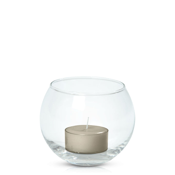 Combining a hand-poured, unscented 4 cm x 2 cm Acrylic Cup Tealight with a sleek 7 cm x 5 cm designer fishbowl glass, this ensemble delivers durability and longevity with a clean, enduring burn. Encased within the glass bowl, the flame will remain safely contained.