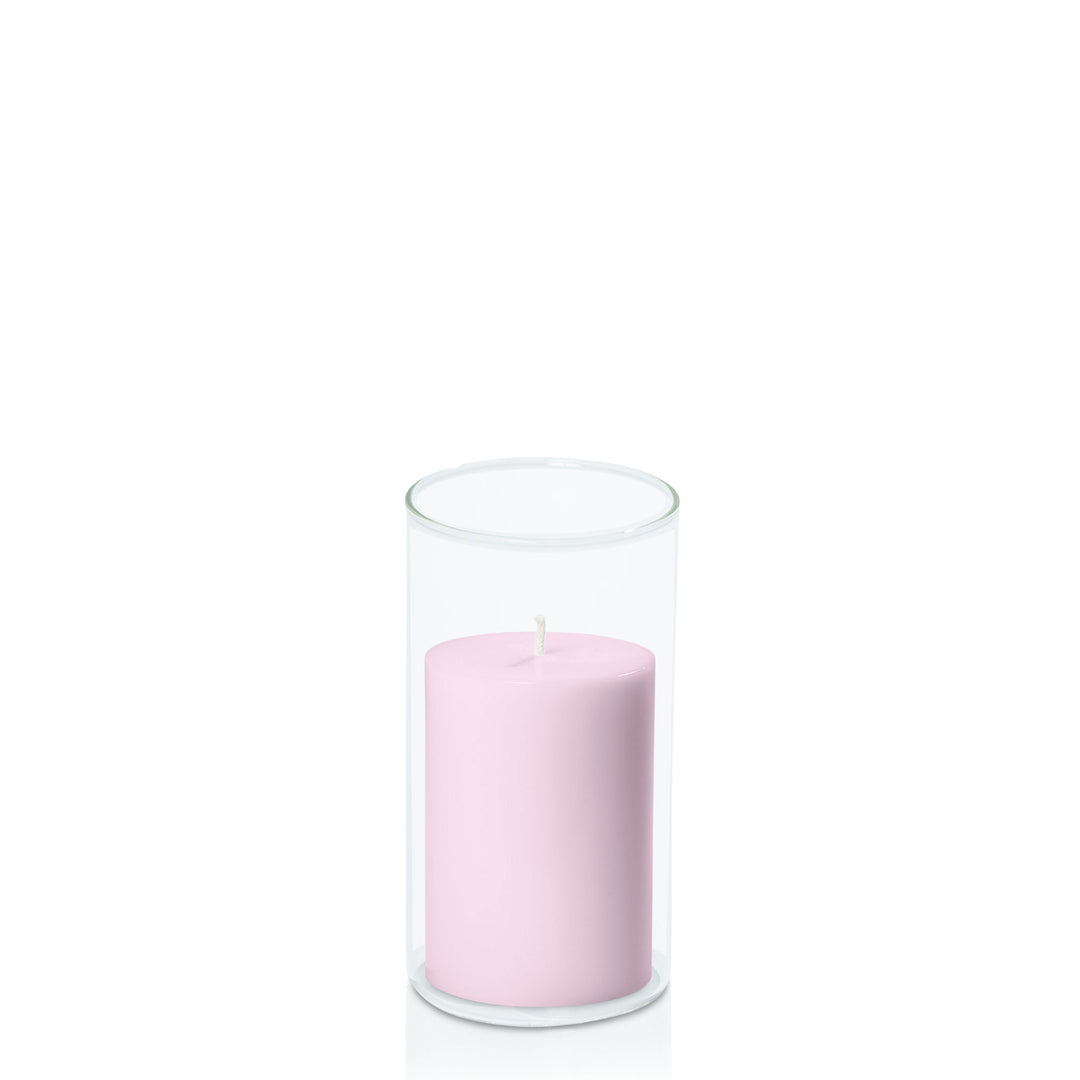 Pastel Pink 7cm x 10cm Pillar in 8cm x 15cm Glass