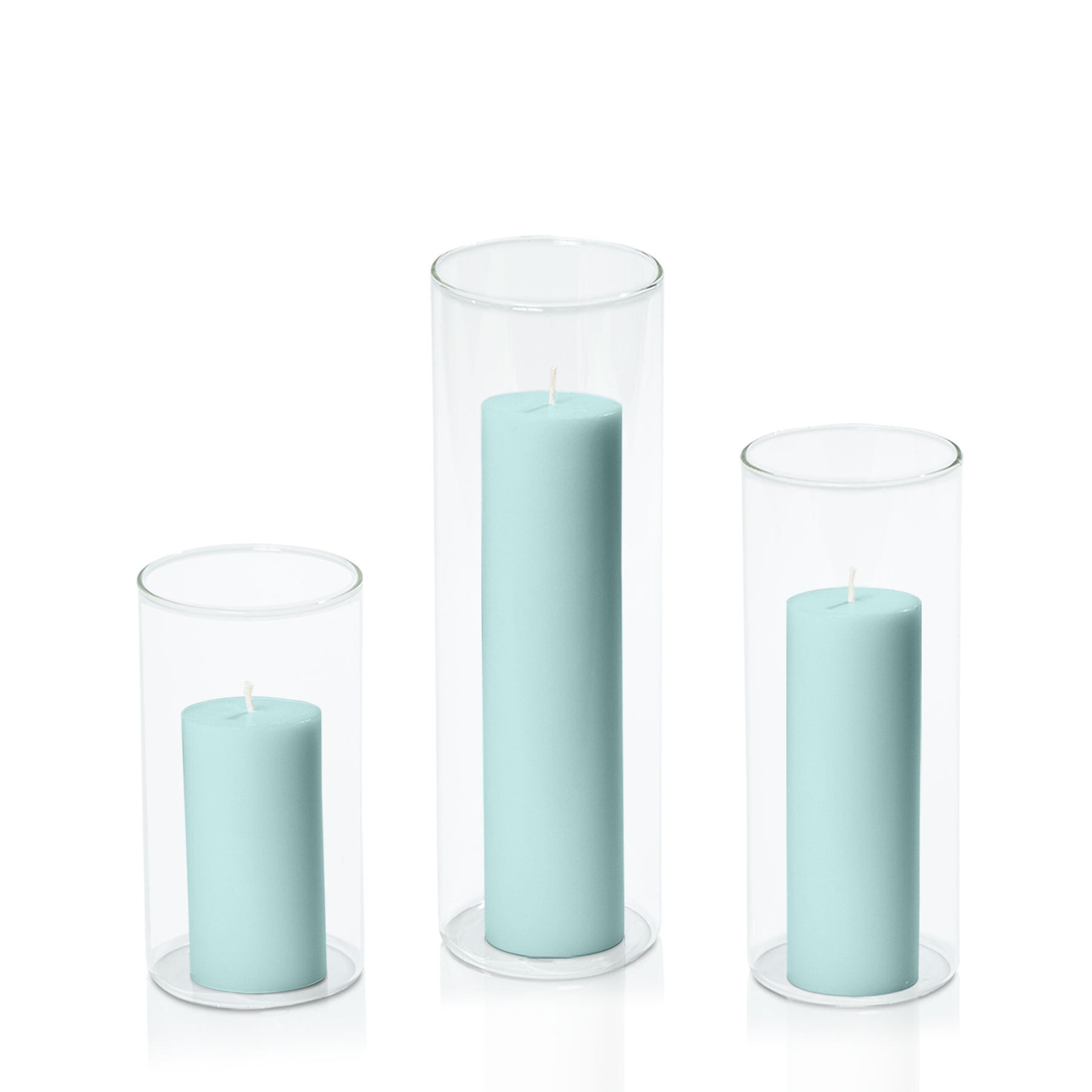 Pastel Teal 5cm Pillar in 8cm Glass Set - Med