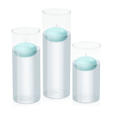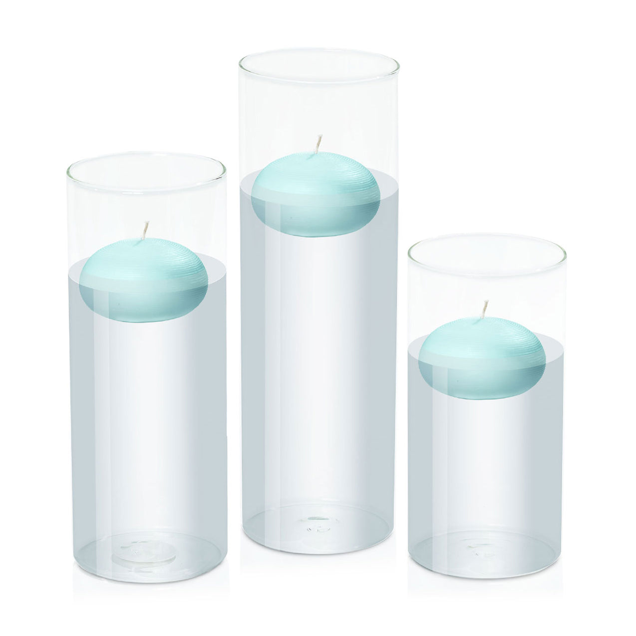 Pastel Teal 7.5cm Floating Candle in 10cm Glass Set - Lg