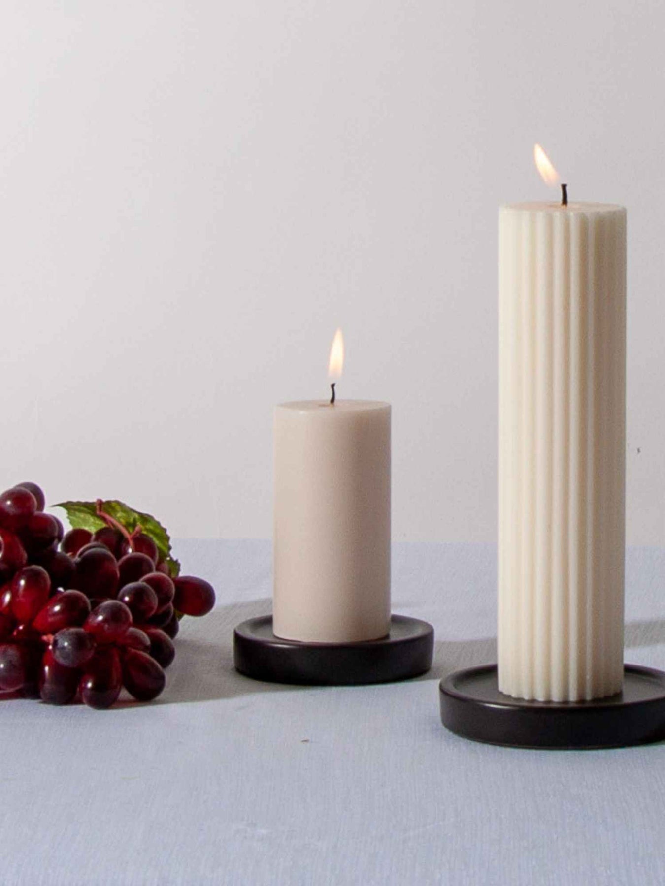 For events, elevate the ambience by clustering various heights of pillar candles in complementary colours on tables or along walkways for a sophisticated touch. At home, create a cosy atmosphere by arranging slim pillar candles in decorative holders on mantels or side tables, infusing your living space with warmth and style.
