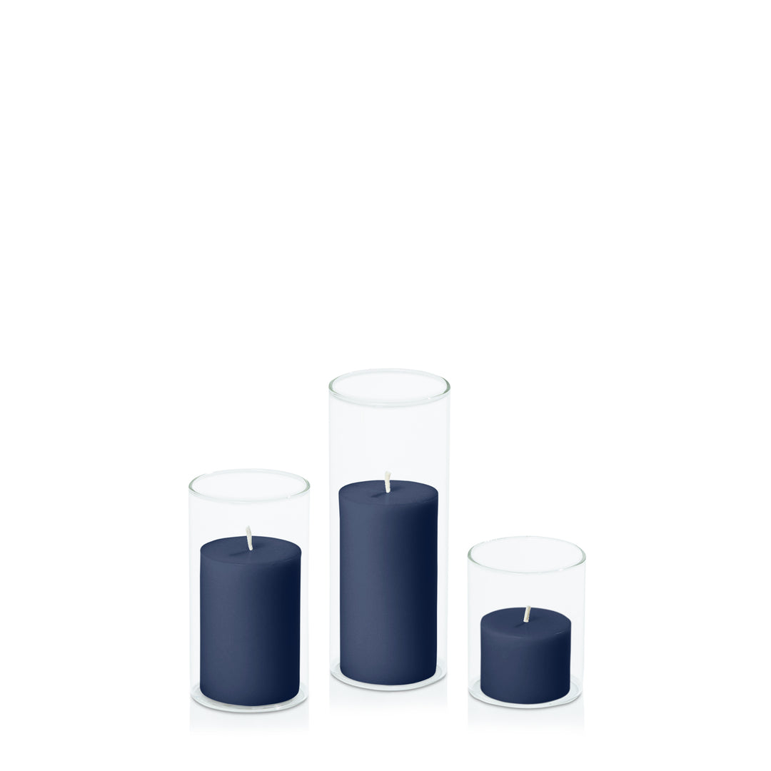 Sapphire 5cm Pillar in 5.8cm Glass Set - Sm