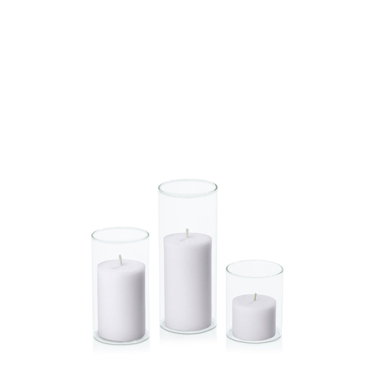 Silver Grey 5cm Pillar in 5.8cm Glass Set - Sm