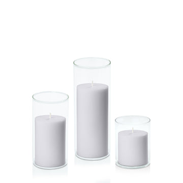 Silver Grey 7cm Pillar in 8cm Glass Set - Sm