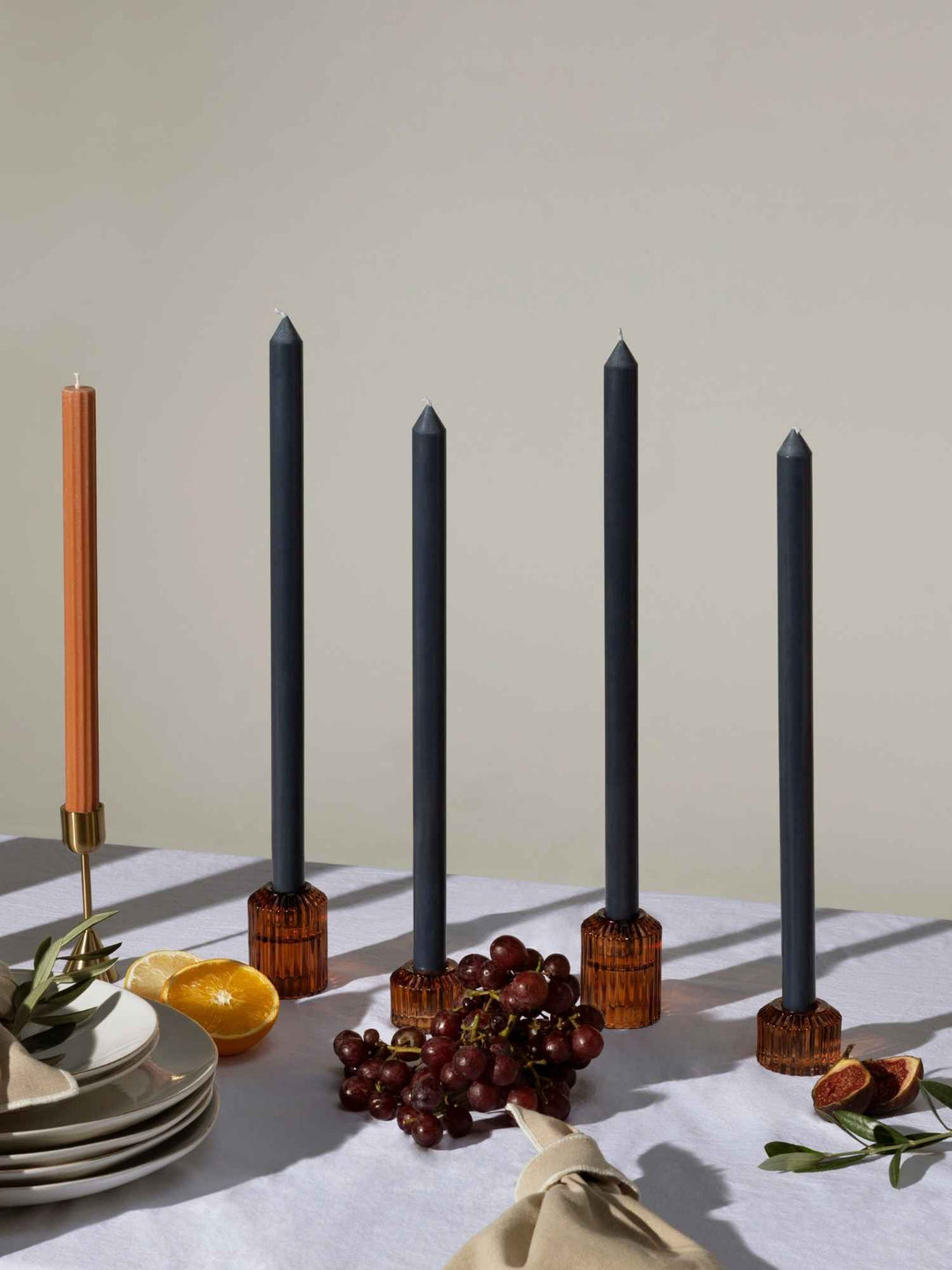 Maximise the aesthetic appeal of our Taper Candles by seamlessly integrating them into your decor. Pair them with one of our sleek candle holders for both a secure base and a touch of sophistication. Experiment with an array of colours, sizes and textures to create a dynamic visual impact, or add an extra layer of refinement by incorporating our glass sleeves.