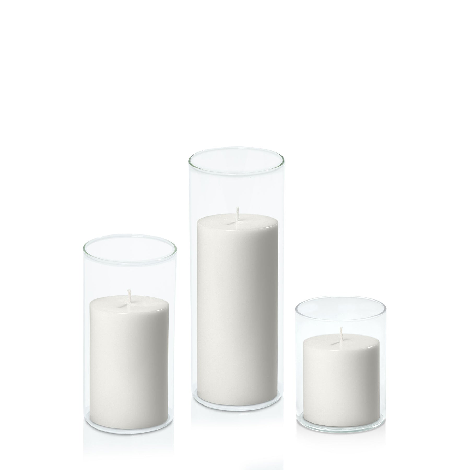 Enhance the atmosphere at events by arranging pillar candles of various heights in glass cylinders on tables or along walkways, adding a touch of sophistication. At home, curate a cosy ambience by placing this candle combo on mantels or side tables, infusing your living space with both warmth and style.