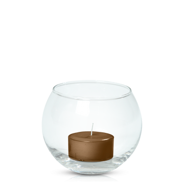 Combining a hand-poured, unscented 4 cm x 2 cm Acrylic Cup Tealight with a sleek 7 cm x 5 cm designer fishbowl glass, this ensemble delivers durability and longevity with a clean, enduring burn. Encased within the glass bowl, the flame will remain safely contained.