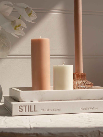 For events, elevate the ambience by clustering various heights of pillar candles in complementary colours on tables or along walkways for a sophisticated touch. At home, create a cosy atmosphere by arranging slim pillar candles in decorative holders on mantels or side tables, infusing your living space with warmth and style.