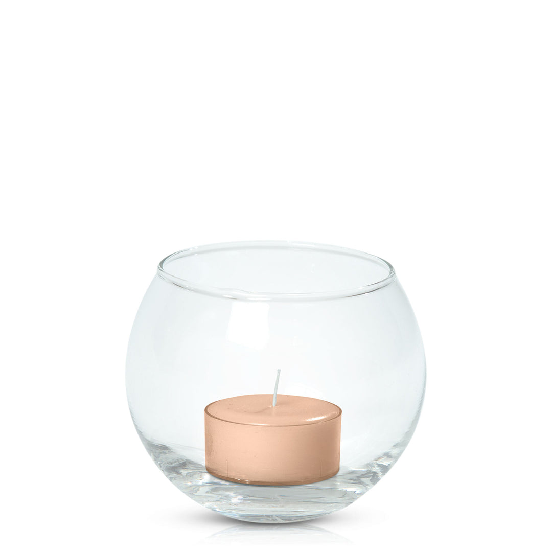 Combining a hand-poured, unscented 4 cm x 2 cm Acrylic Cup Tealight with a sleek 7 cm x 5 cm designer fishbowl glass, this ensemble delivers durability and longevity with a clean, enduring burn. Encased within the glass bowl, the flame will remain safely contained.