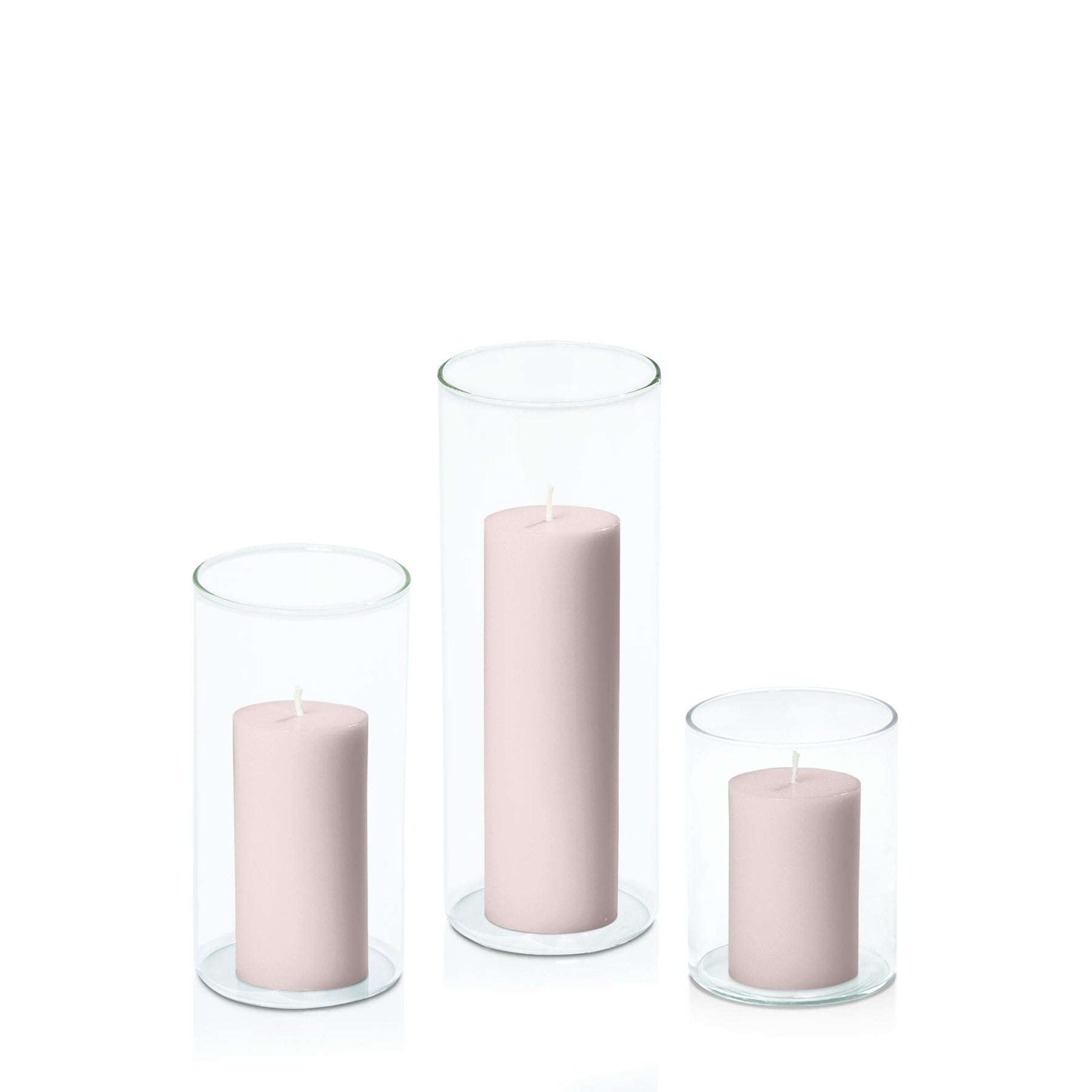 Enhance the atmosphere at events by arranging pillar candles of various heights in glass cylinders on tables or along walkways, adding a touch of sophistication. At home, curate a cosy ambience by placing this candle combo on mantels or side tables, infusing your living space with both warmth and style.