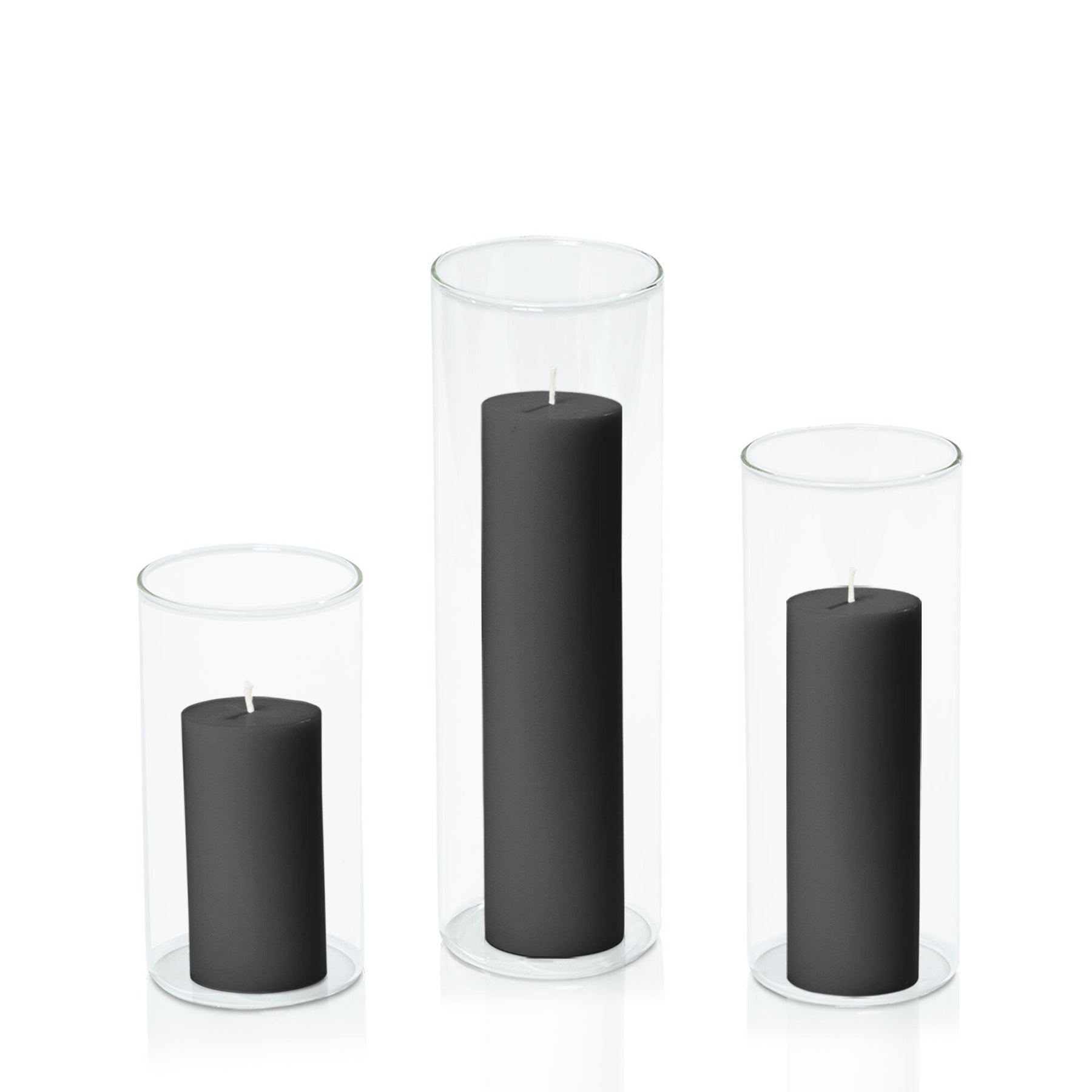 Black 5cm Pillar in 8cm Glass, Med - Set of 6