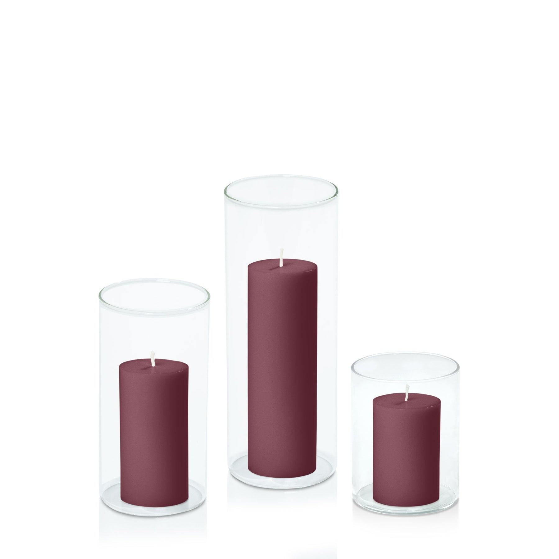 Burgundy 5cm Pillar in 8cm Glass, Sm - Set of 6