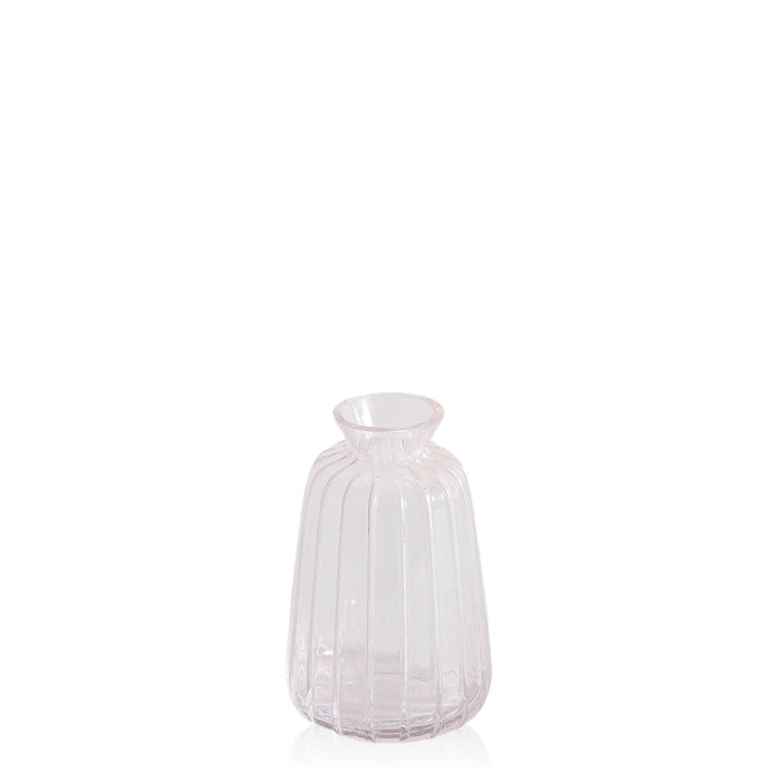 Introducing Isabella, our clear ribbed glass bud vase, a timeless vessel designed to showcase the elegance of a single stem flower.