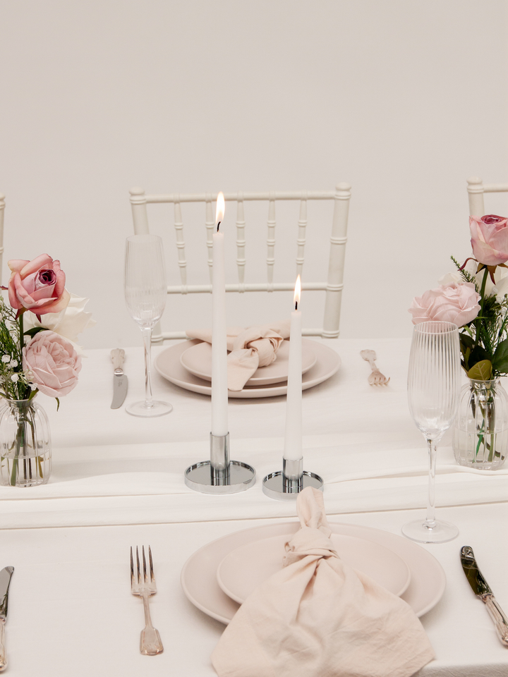 Pair our bud vase with the enchanting Estelle glass taper holder to create a harmonious table of light and floral elegance.
