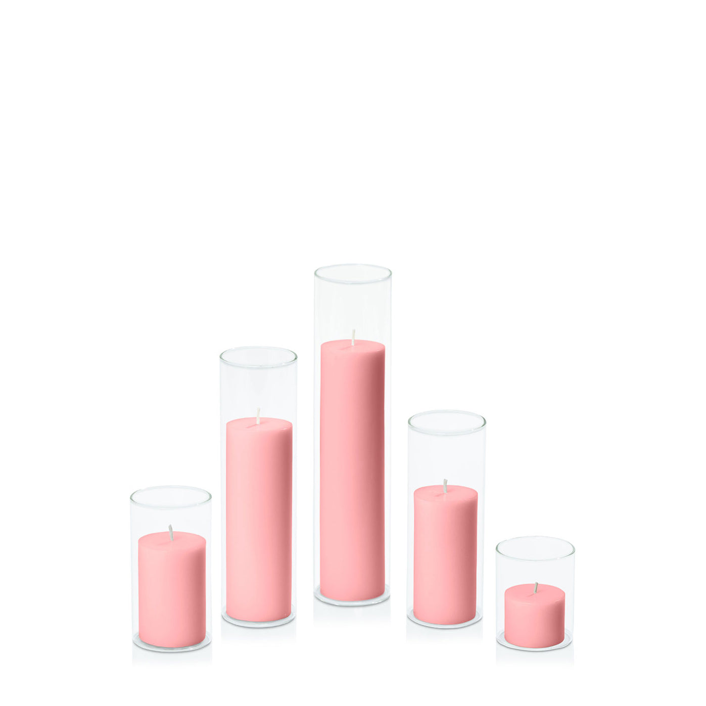 Coral Pink 5cm Pillar in 5.8cm Glass, Sm - Set of 6