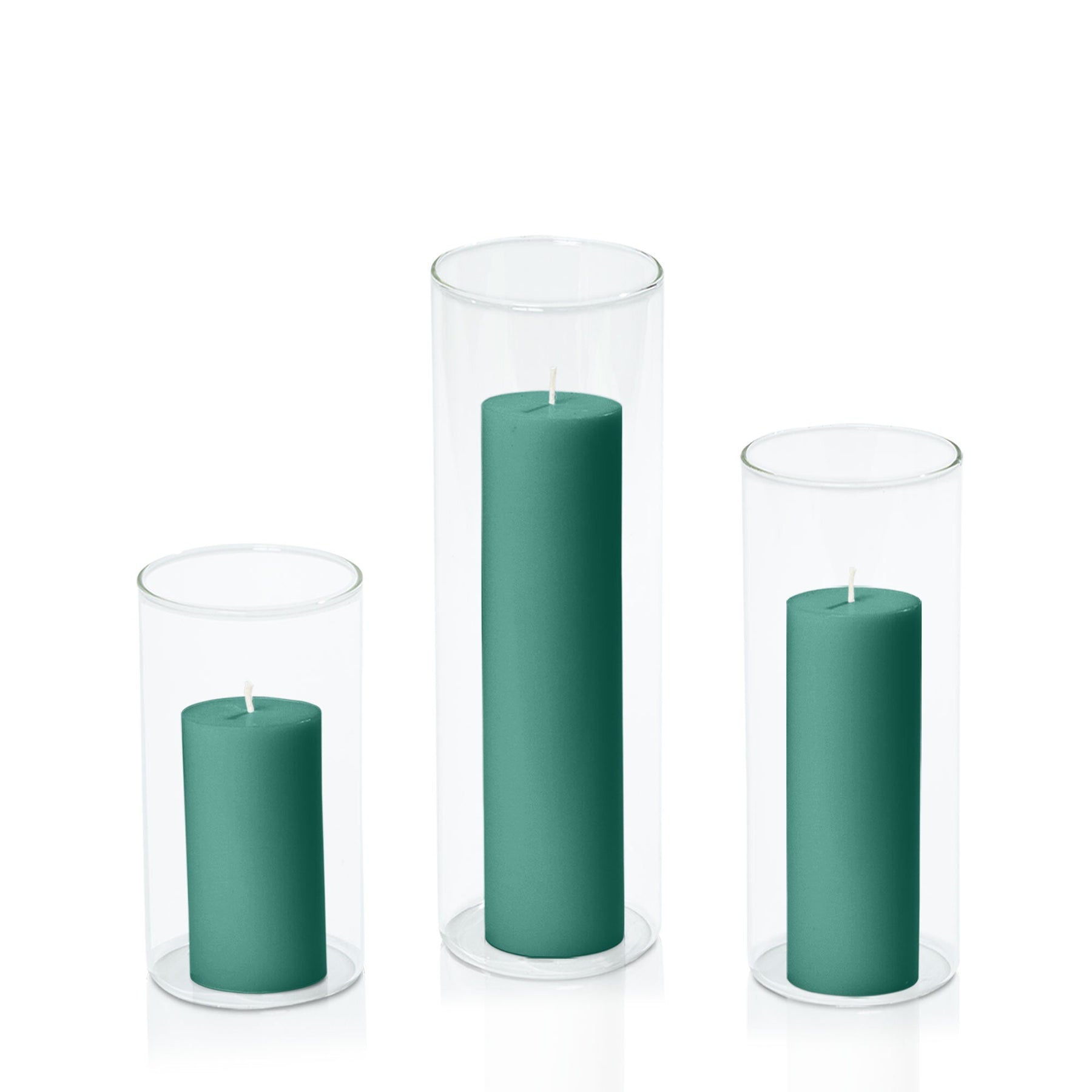 Emerald Green 5cm Pillar in 8cm Glass, Med - Set of 6