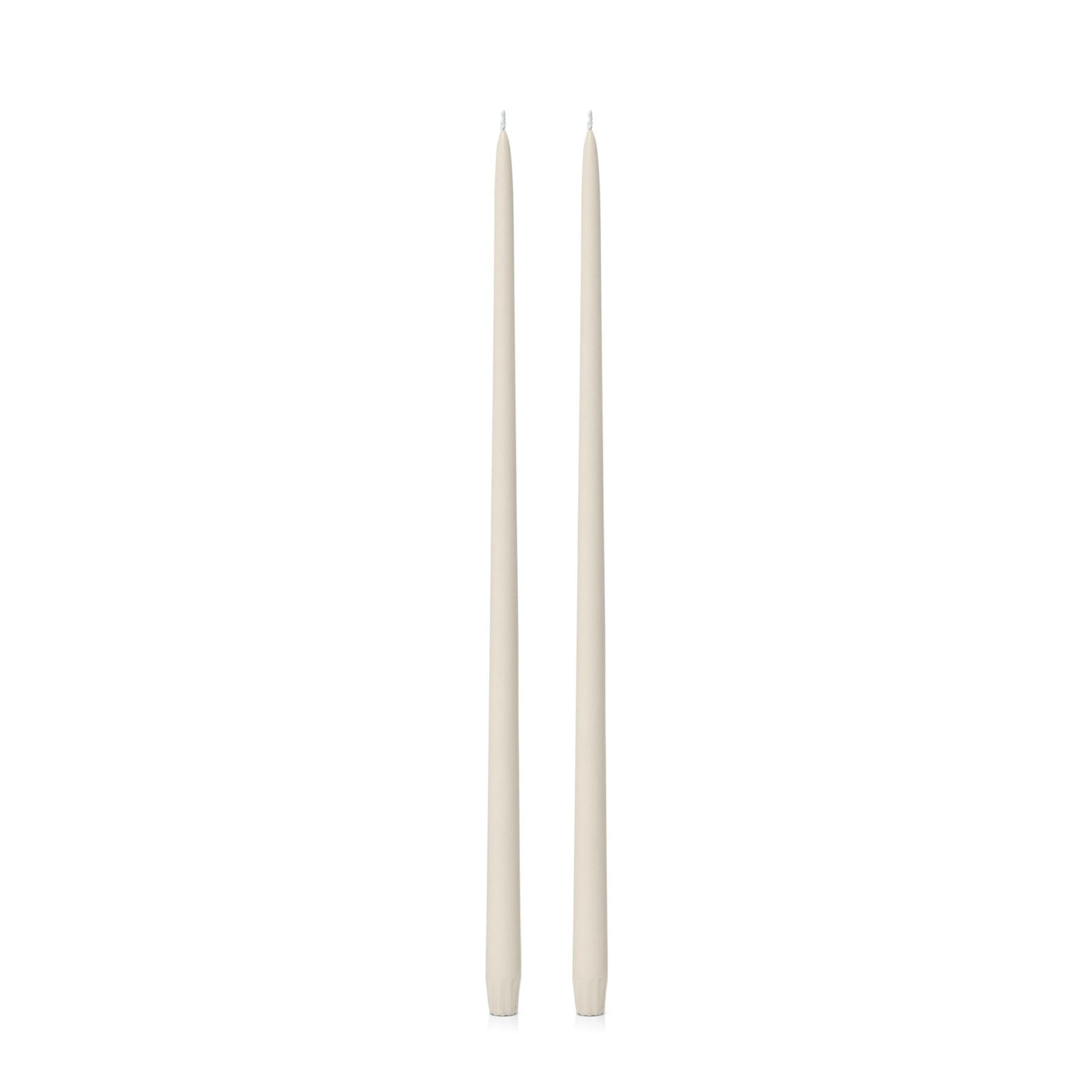 Elevate your ambience with our Hand-Poured Unscented Taper Candles. Standing at 55 cm tall with a 2 cm diameter, they are crafted from renewable plant-based wax, dyed naturally, and features a braided cotton, lead-free wick. Enjoy a clean, long-lasting burn.
