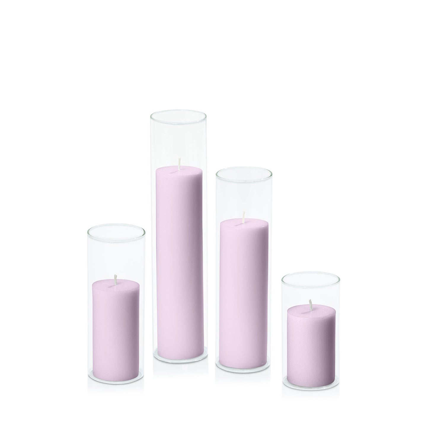 Lilac 5cm Pillar in 5.8cm Glass, Med - Set of 6